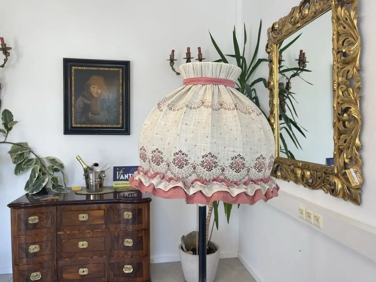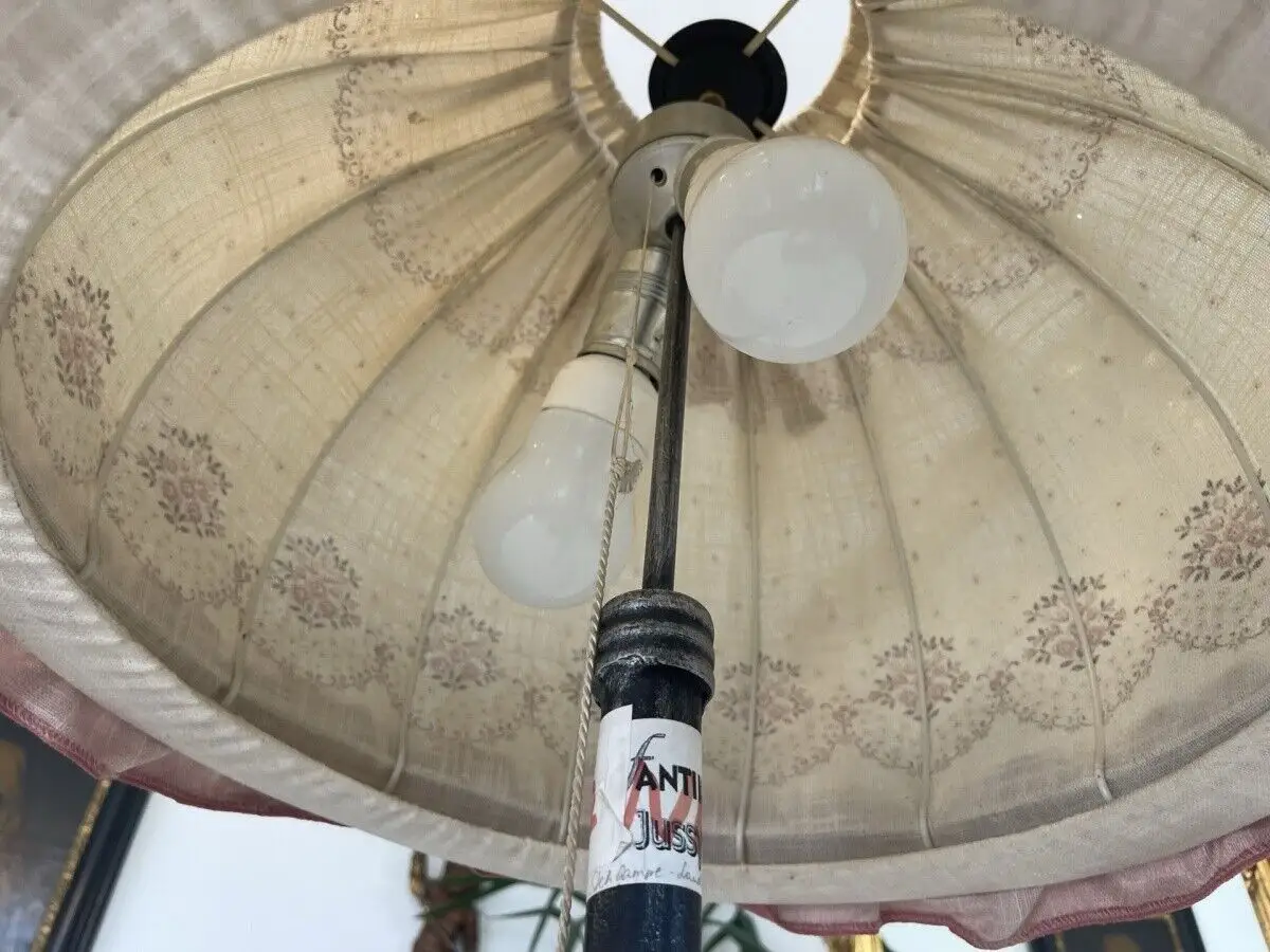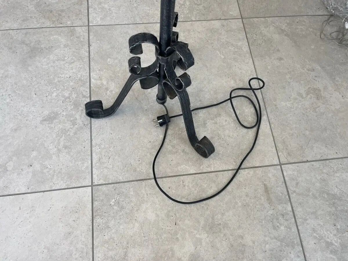 Bezaubernd gefertigter provinzieller Stanleuchte Standlampe Schmiedeeisen mit Stoffschirm