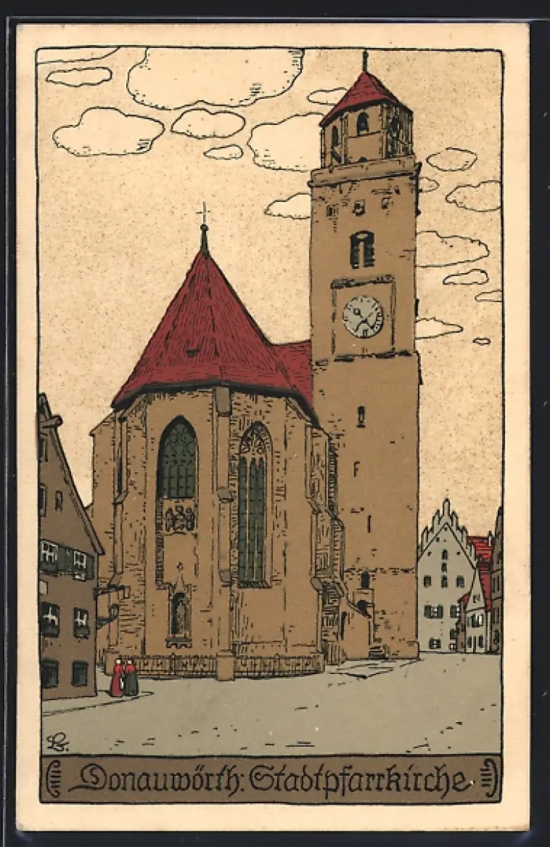 Steindruck-AK Donauwörth, Stadtpfarrkirche