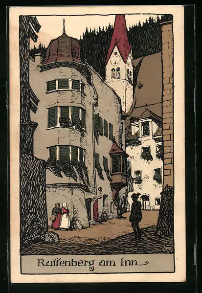 Steindruck-AK Rattenberg am Inn, Strassenpartie mit Gebäudeansicht