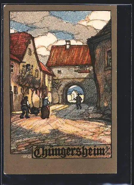 Steindruck-AK Thüngersheim a/M, Strassenpartie im Ort