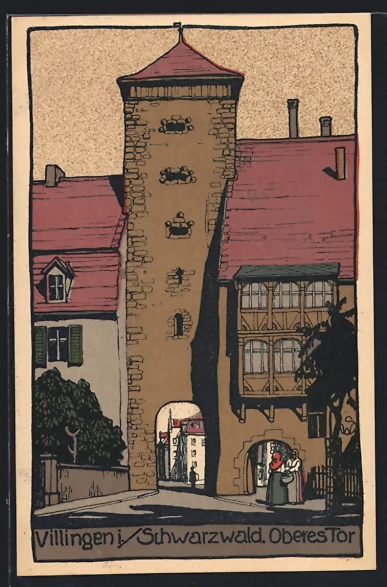 Steindruck-AK Villingen i. Schwarzwald, Oberes Tor