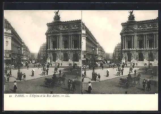 Stereo-AK Paris, L`Opera et la Rue Auber