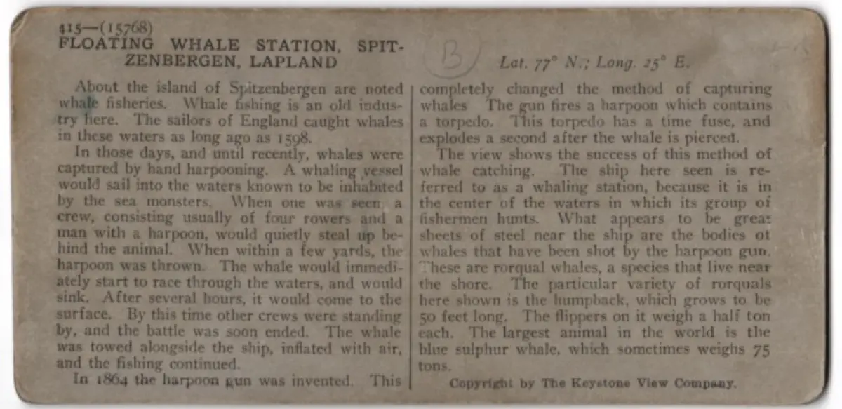 Stereo-Fotografie Keystone View Co., Meadville, Walfänger bei Spitzbergen, Floating Whale Station, Walfang
