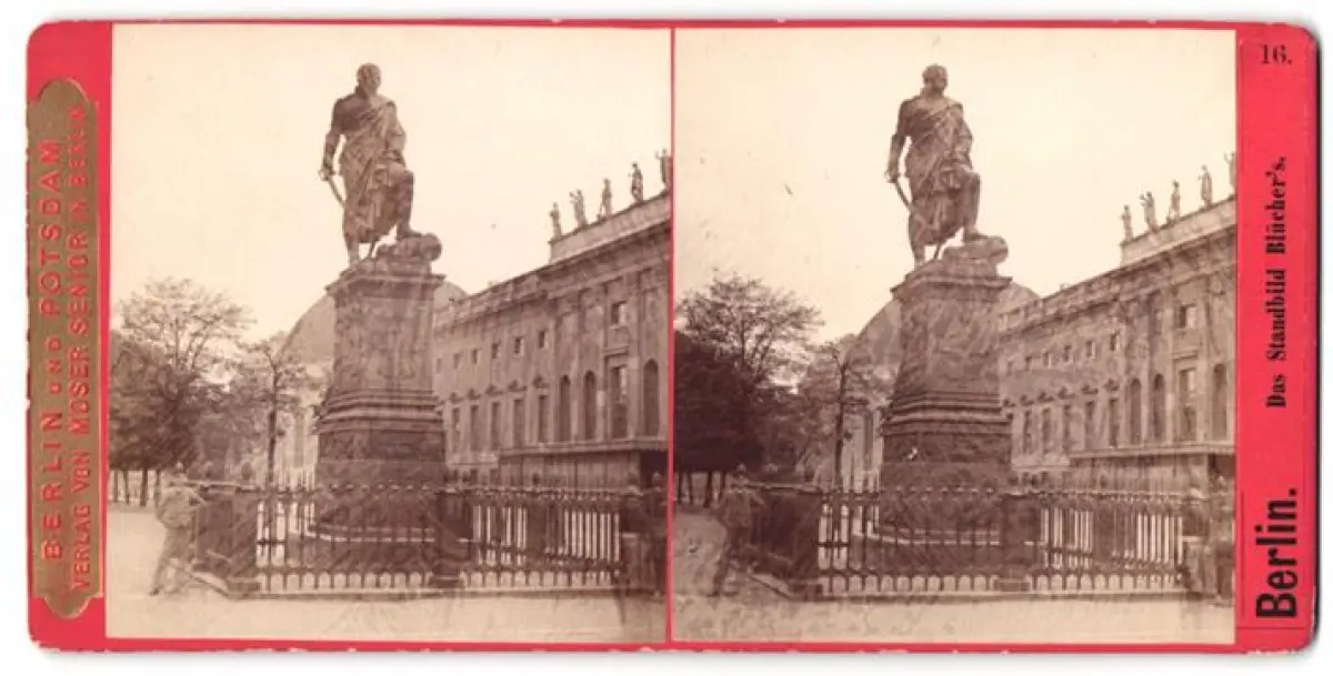 Stereo-Fotografie Moser Senior, Berlin, Ansicht Berlin, Blick auf dsa Blücher Standbild