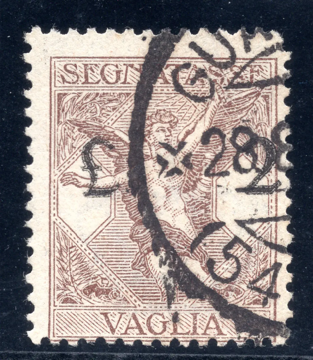 Gebraucht - Steuermarken Vaglia Lire 2 Nr. 5 mit stark nach oben und rechts verschobenem Zifferndruck, gebraucht, obere rechte Ecke abgerundet - wertvolle Sorte noch nicht katalogisiert - signiert G. Chiavarello EuroN.C Katalog. Cod.2144/WEB