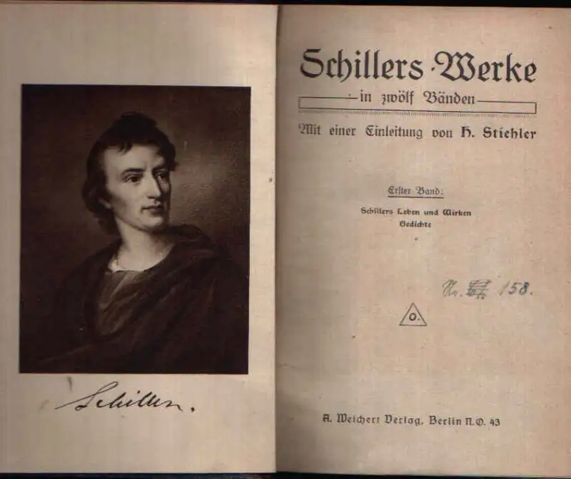 Schillers Werke in zwölf Bänden; H. Stiehler; Schillers Leben und Wirken, Gedichte; Die Räuber; Die Verschwörung des Fiesko zu Genua; Kabale und Liebe; Don Karlos; Infant von Spanien