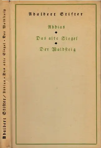 das Erscheinungsjahr ist geschätzt, der Einband ist fleckig, die Seiten sind leicht gebräunt, die Rückenkanten sind betsoßen, 3 Geschichten in einem Band von Adalber Stifter: Abdias - Das alte Siegel - Der Waldsteig Beschreibung vom Antiquariat Ardelt 3m3 Antiquariat Ardelt