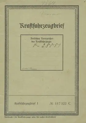 Stoewer Greif 1474 ccm Original Fahrzeugbrief 1938