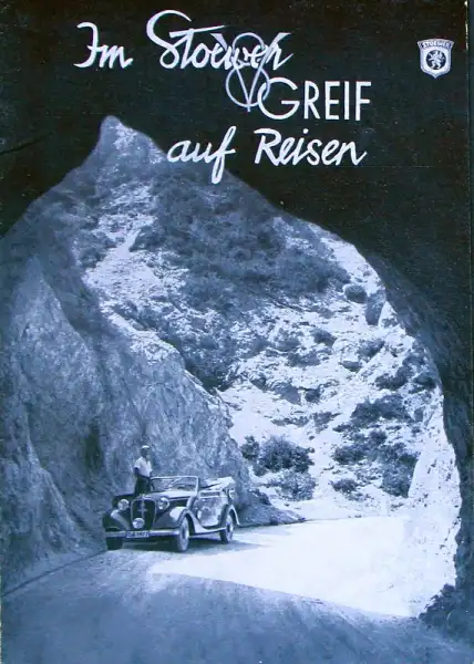 Stoewer Greif V8 Modellprogramm 1936 "Im Stoewer auf Reisen" Automobilprospekt (0335)