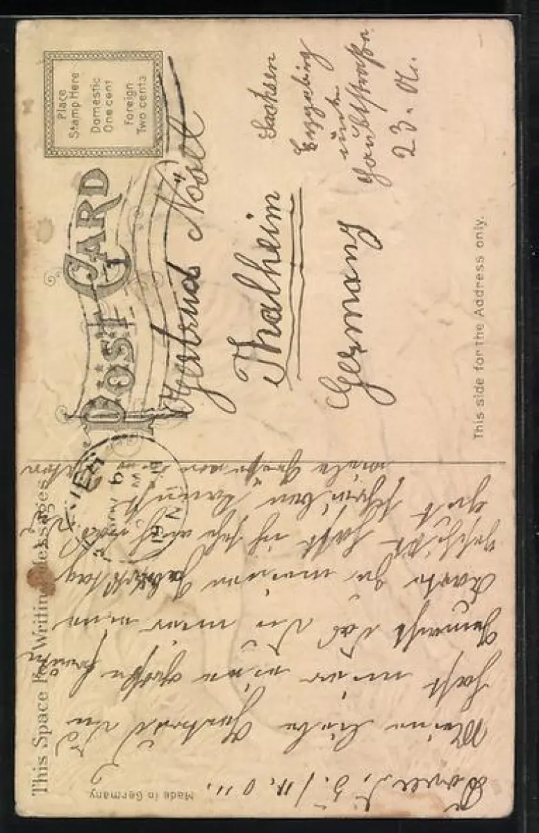 alte Ansichtskarte, gelaufen, Briefmarke entfernt, guter Zustand