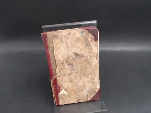 Dieses Buch stammt aus der Sammlung der Stiftung Heinrich Arbs. Mit privater Widmung (April 1828). Starke Gebrauchsspuren. Einband berieben und leicht bestoßen. Die Beschichtung der Buchddeckel ist brüchig, der Ledereinband teils beschädigt und teils abgelöst. Bindung zwischen vorderem Einbanddeckel und Buchblock leicht angebrochen, Bindung an zwei Stellen offenliegend. Vorderes Vorsatzpapier zur Hälfte abgelöst, 2 weitere ganz gelöst. Papier altersgemäß leicht gebräunt und wellig, diverse Seiten etwas fleckig. 4 Seiten mit kleinen Tintenklecksen, einige Wörter unleserlich