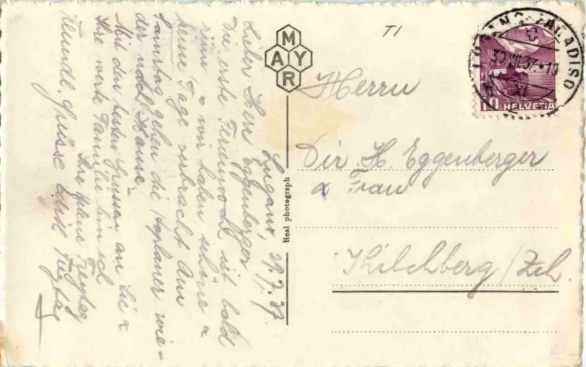 Danke. Alles Bestens. Können Sie mir allenfalls mitteilen, aus welchem Jahr die Postkarte stammt? Besten Dank.