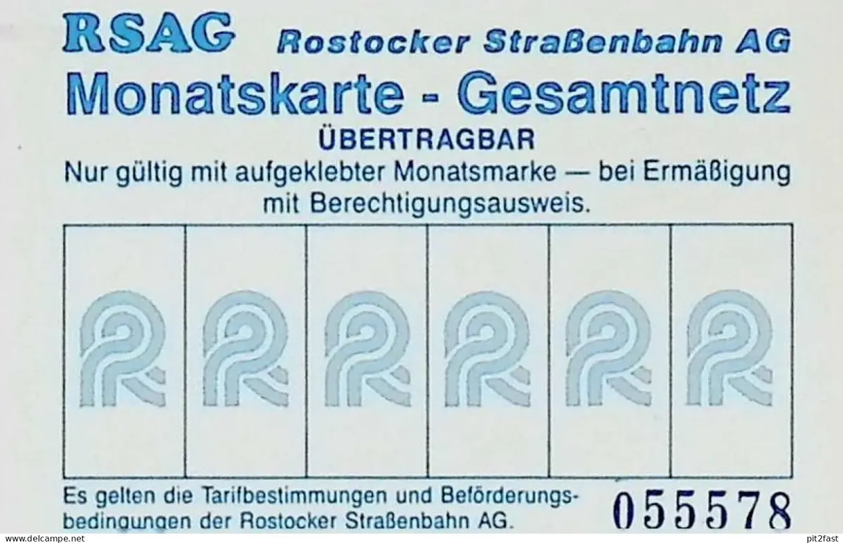 Strassenbahn Rostock , 1991 , alte Monatskarte , Fahrkarte , RSAG , Rostocker Straßenbahn AG !!AZ-WR/4