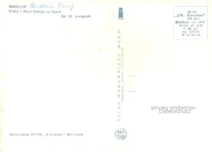 Strassenbahn Wroclaw Placu Solnego na Rynek postalisch nicht gelaufen 1921-1965 Erhaltung siehe scans [PaolaD17] PaolPID1