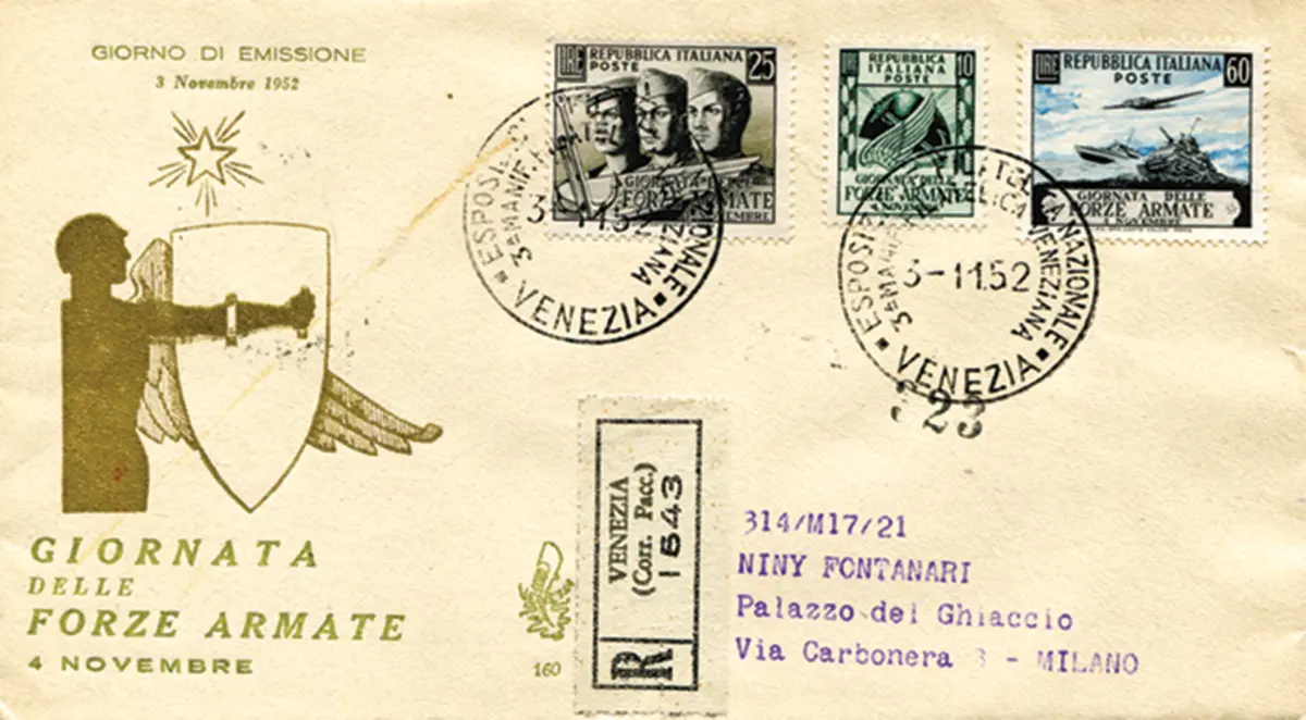 Umschlag - Streitkräfte Nr. 699/701 Serie auf Umschlag Racc. für Mailand mit Stornierung der Ankunft Cod. 430/14