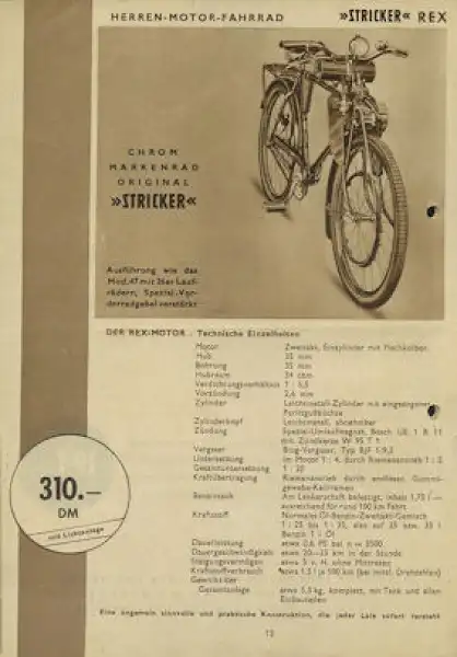 24 Seiten 26 x 18 cm Stricker-Rex Motorfahrrad Leichte Gebrauchsspuren, gelocht