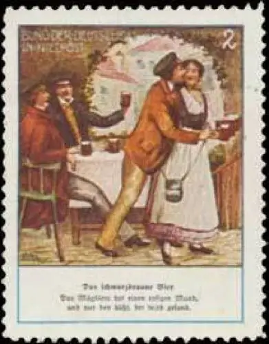 Das schwarzbraune Bier, Größe/Zustand: 4x4 , guter Zustand, Original alte Reklamemarke die seinerzeit für die Werbung benutzt wurde