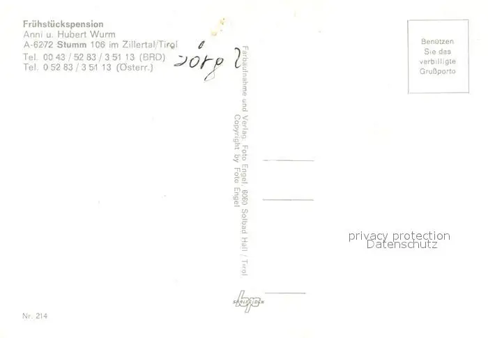Stumm_Zillertal Fruehstueckspension Wurm Pool Stumm_Zillertal postalisch nicht gelaufen nach 1965 Erhaltung siehe scans [WerneD78] WernPID7