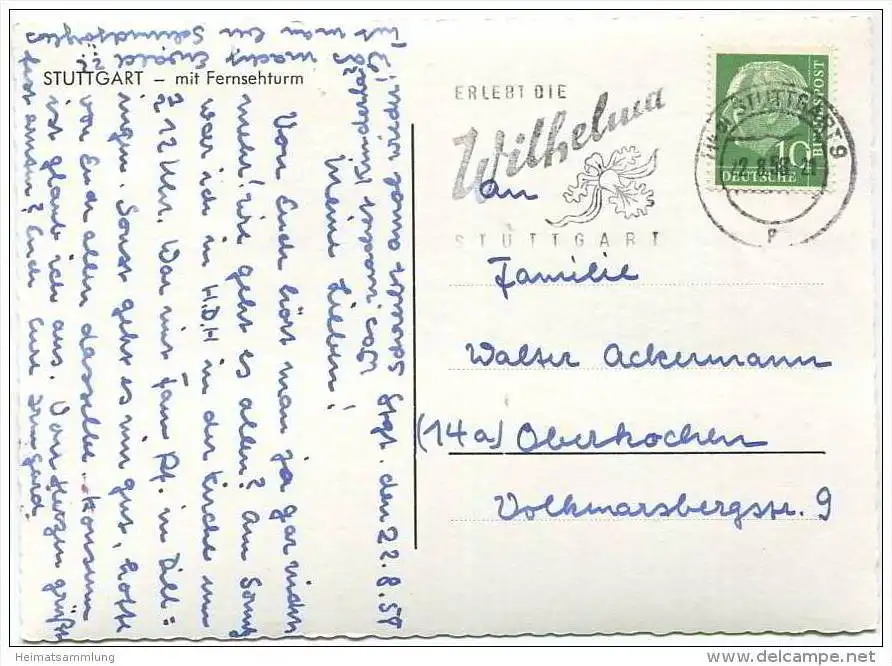 Stuttgart mit Fernsehturm - Foto-AK Grossformat (E13650) gel. 1959