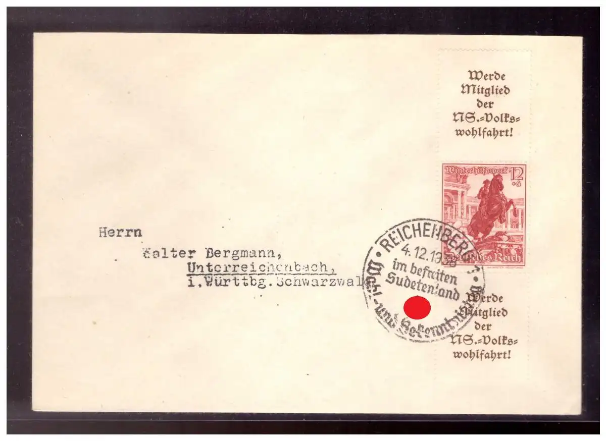 Sudetenland (022534) Brief mit Zusammendruck S256 Winterhilfswerk mit SST Reichenberg 4.12.1938