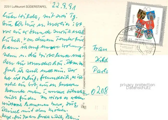 Suederstapel Fontaene Strand Bootshafen Camping Suederstapel postalisch gelaufen 1991 Erhaltung siehe scans [WerneD78] WernPID7