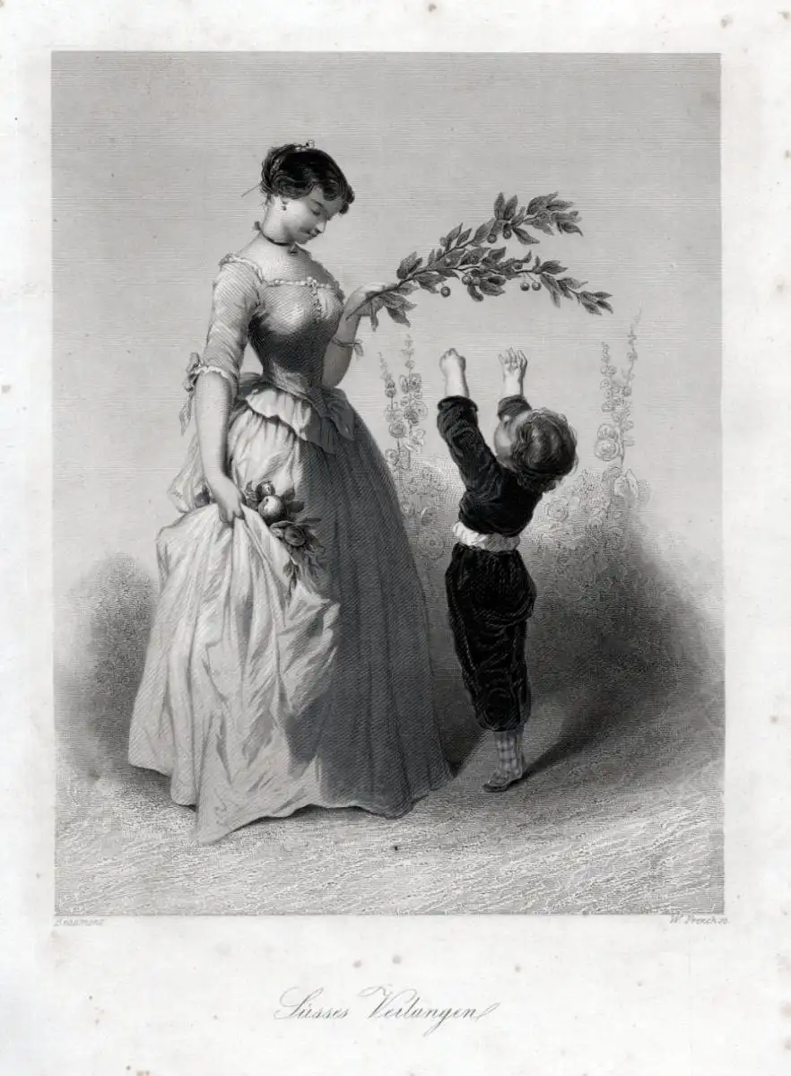Süsses Verlangen. Originaler Stahlstich, gestochen von French um 1850