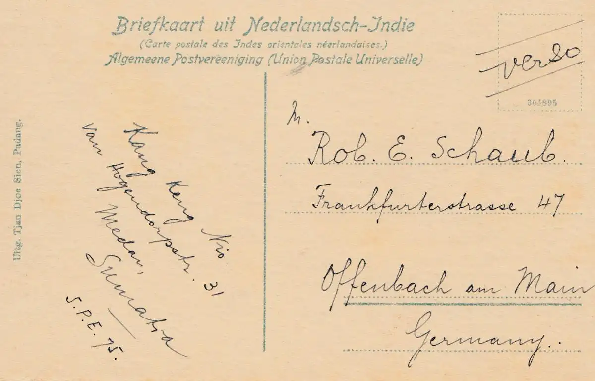 Sumatra post card Padang to Offenbach
