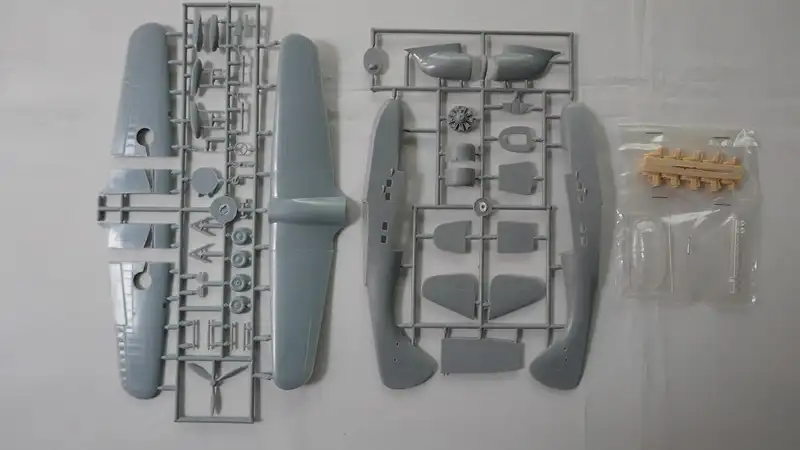 Einzelteile (Plastikbauteile) sind noch am Rahmen fixiert; Sichthülle wurde geöffnet.