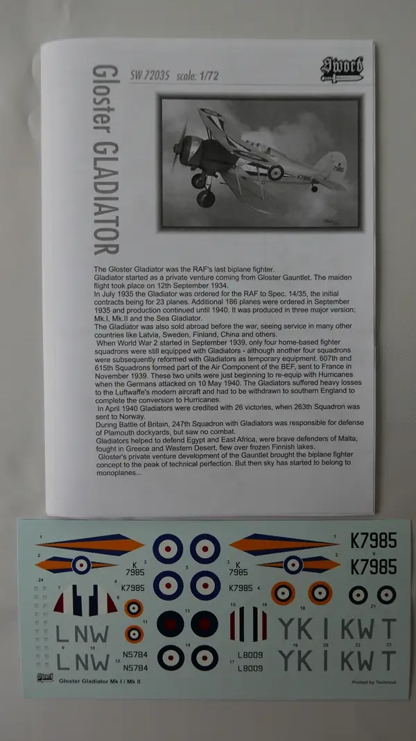Sword Gloster Gladiator-1:72-SW72035-Modellflieger-OVP-0539