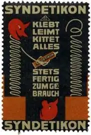 Klebt, leimt, kittet, alles. Stets fertig zum Gebrauch. Klebstoff, Größe/Zustand: 5x3 , guter Zustand, Original alte Reklamemarke die seinerzeit für die Werbung benutzt wurde
