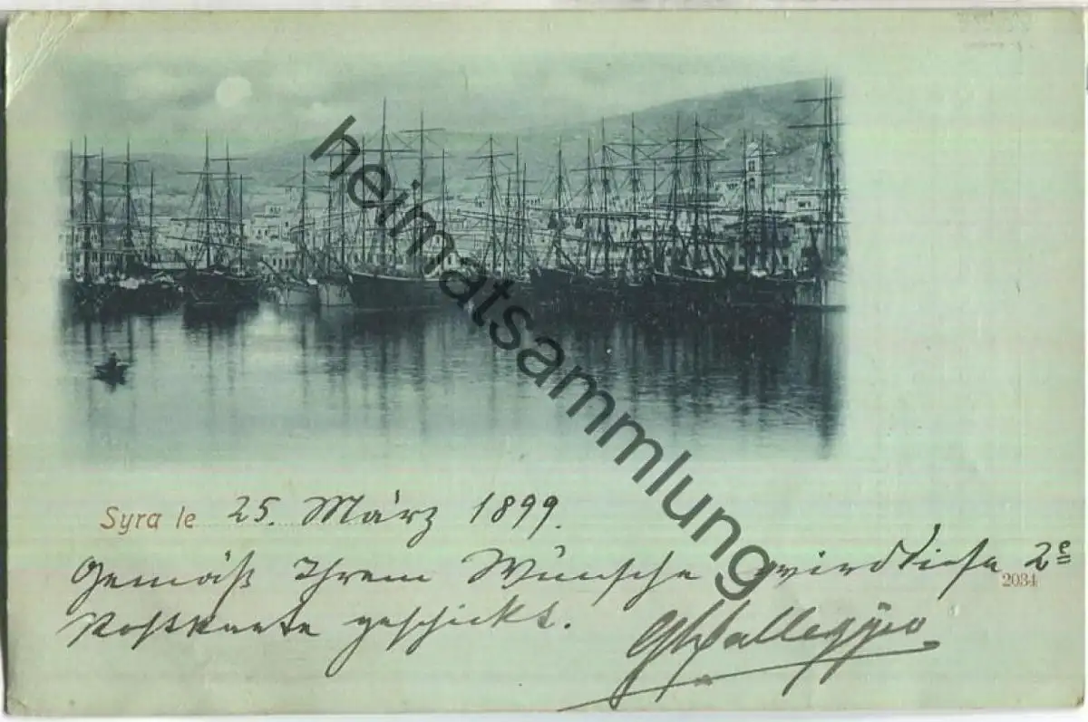 Syra - Boote - Mondschein - Ecken teilweise bestossen (E97725) gel. 1899