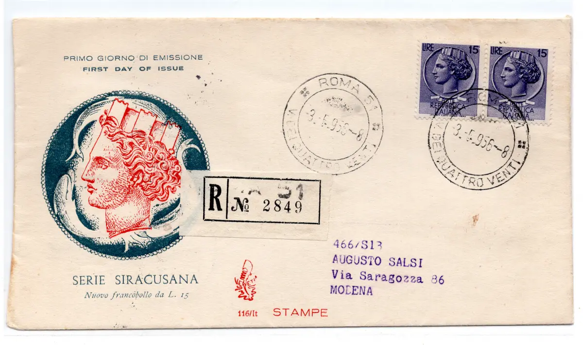 Syrakus Lire 15 Paar auf Umschlag Venetia Racc.