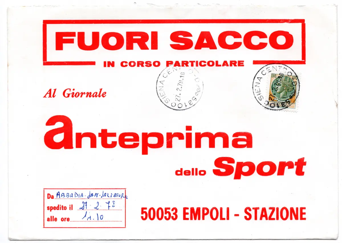 Syrakus Lire 170 isoliert auf Umschlag AUS SACK von Siena nach Empoli am 27.2.1978 - Seltener Postdienst Cod. 1258 / Outlet