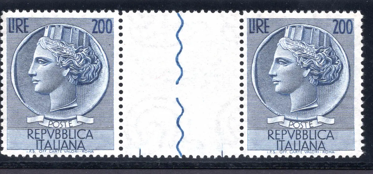 MNH - Vollgummi - - Syracusana Lire 200 Nr. 748 zwei Exemplare, die in der Mitte durch den Blattzwischenraum getrennt sind - Ungewöhnlich, für Ausgabespezialisten Cod.606/182