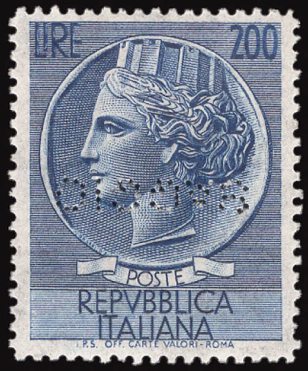 MNH - Vollgummi - Syrakus Lire 200 Nr. 816 mit umgekehrter WEISHEIT-Bohrung - Selten Cod. 795/17