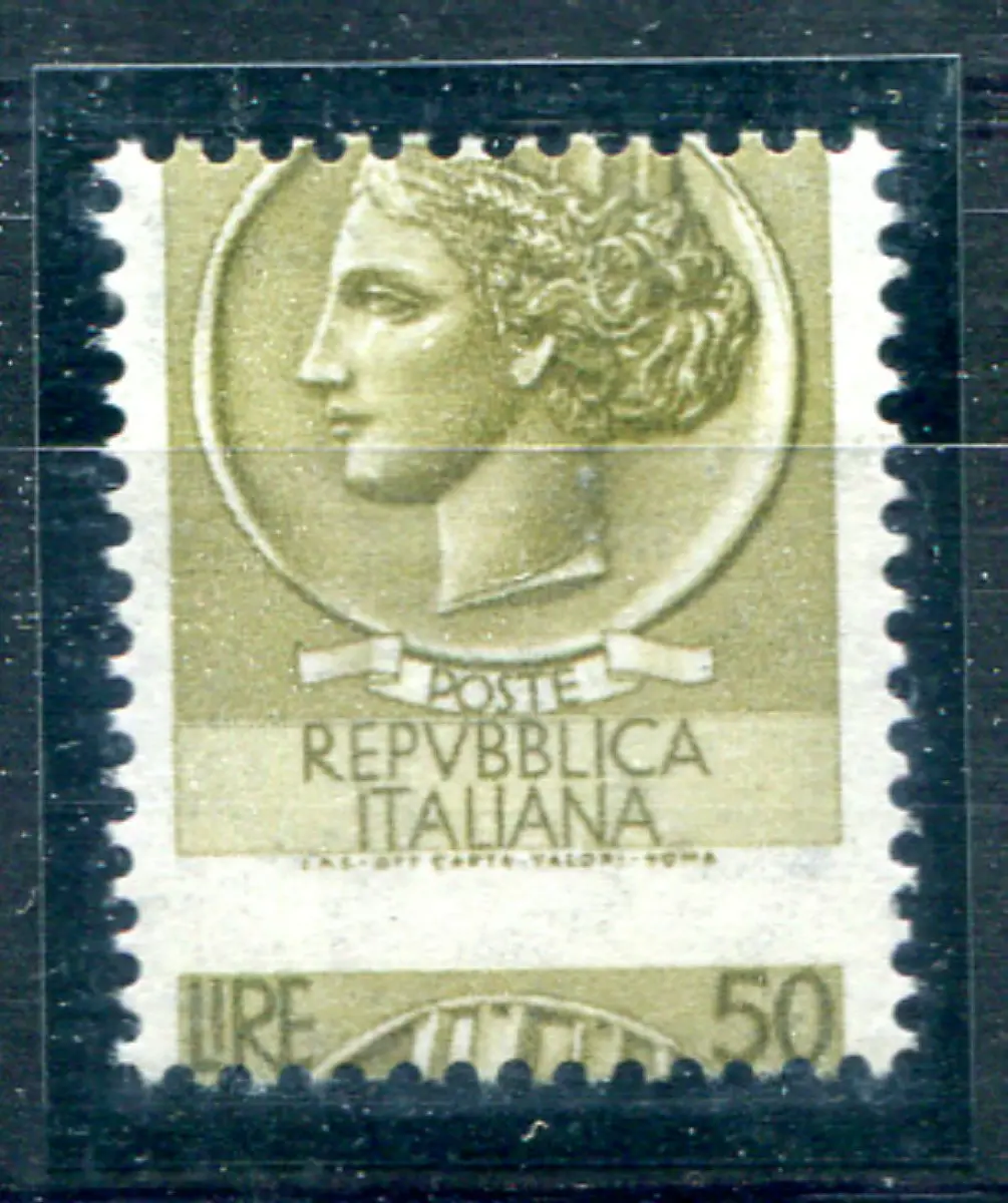 Vollgummi - Syracusana Lire 50 Nr. 773/II mit stark vertikal verschobener Verzahnung Lire 50 nach unten - Kat. Euro 80 n. 1135/A