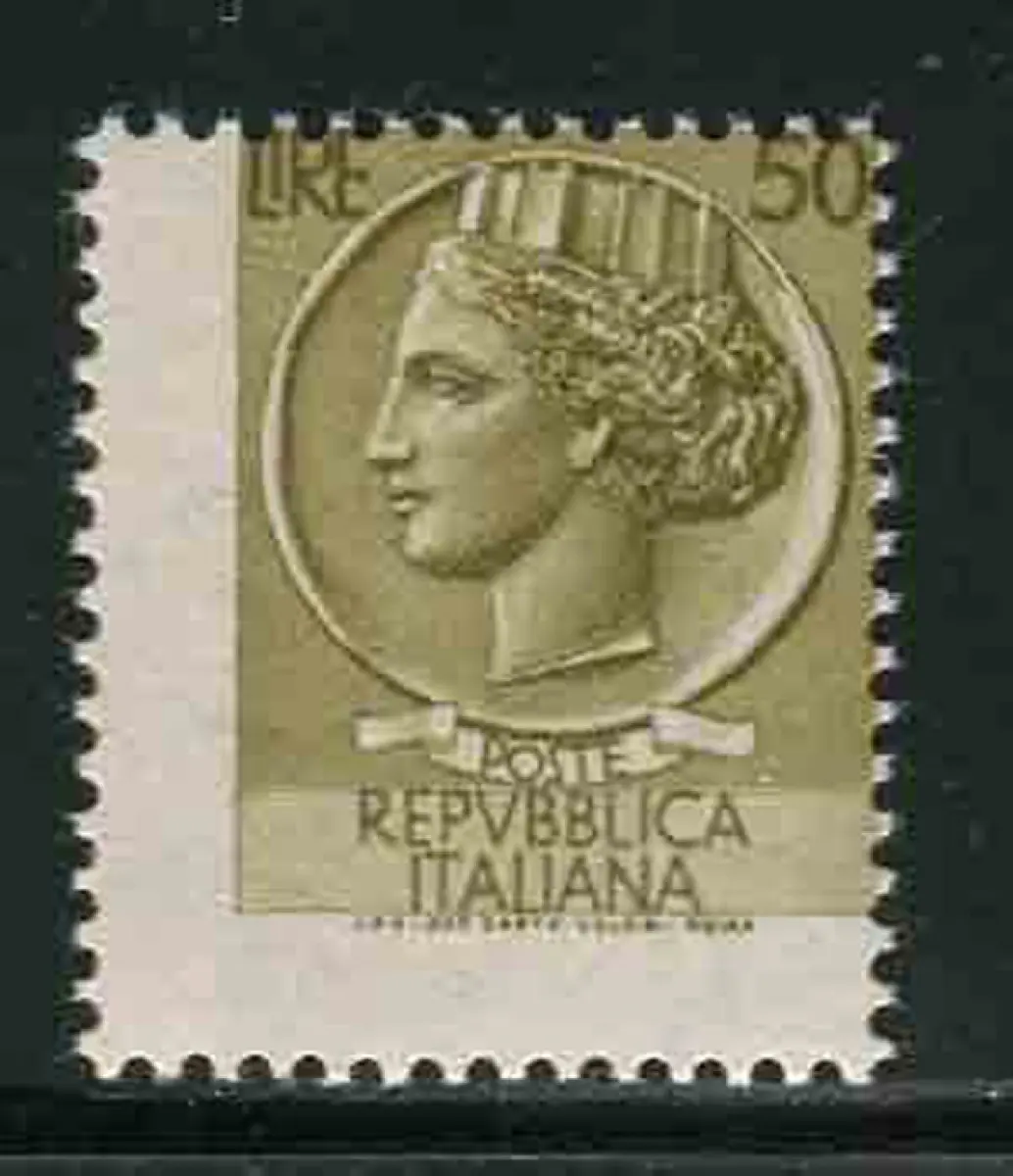Vollgummi - Syracusana Lire 50 (Arabica-Gummi) Nr. 1076m stark in beide Richtungen verschobene Verzahnung - Ungewöhnlich - Kat. euro 90 n. 816/5