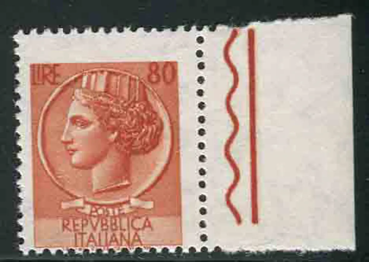 Syracusana Lire 80 Sorten stark verschobene horizontale Verzahnung Vollgummi - Syracusana Lire 80 (Arabica-Gummi) Nr. 1080l stark verschobene horizontale Verzahnung - Selten - Kat. euro 90 n. 814/5