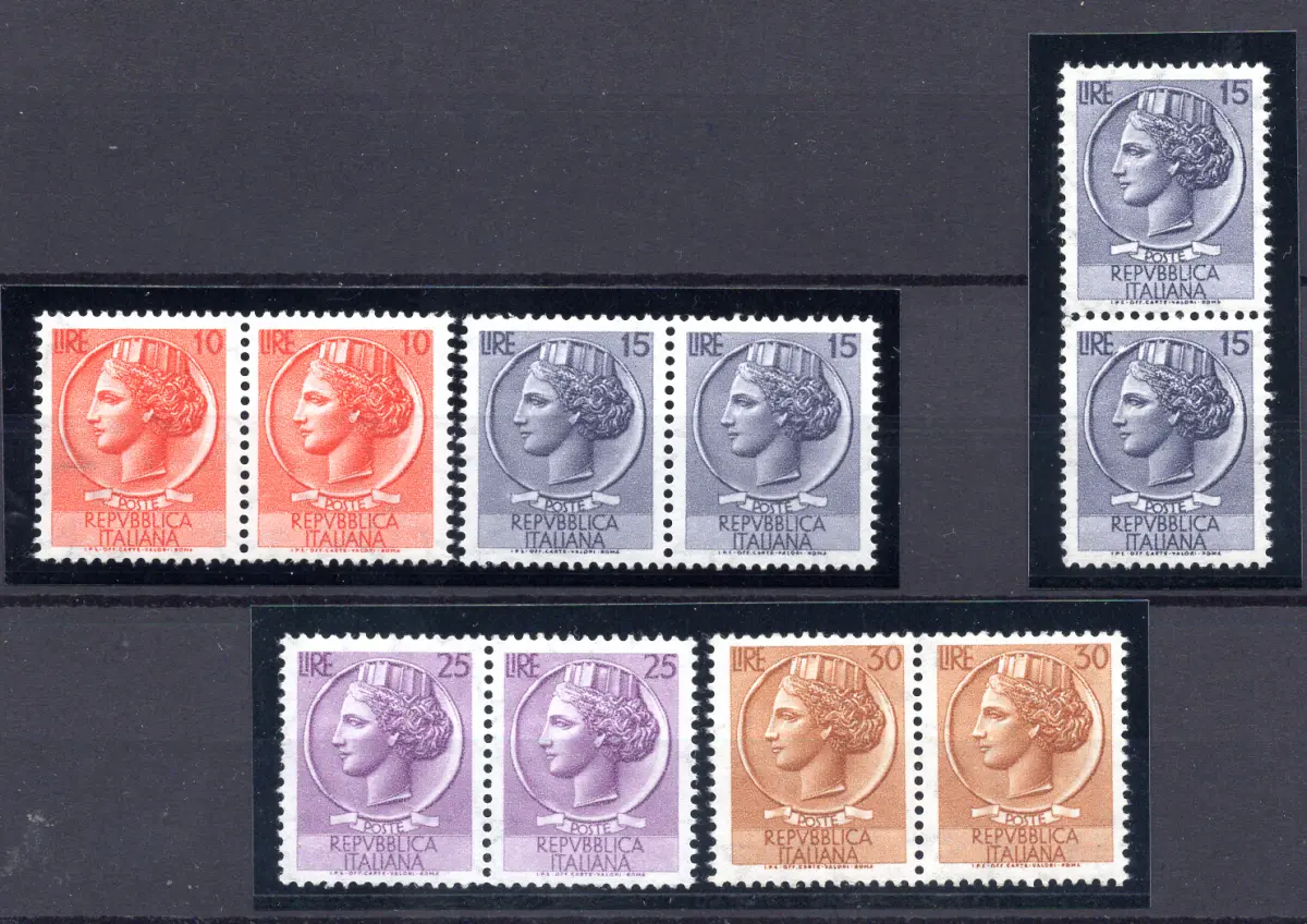 MNH - Vollgummi - - Syrakus Ausgabe für Verteilermaschinen - Die Serie von 4 Sternenwerten I. Vertikaler Typ paarweise, davon ein Exemplar mit Zähler auf der Rückseite - sehr guter Erhaltungszustand (Sass. Nr. B764/770) - Kat. euro 500 Cod.615/182