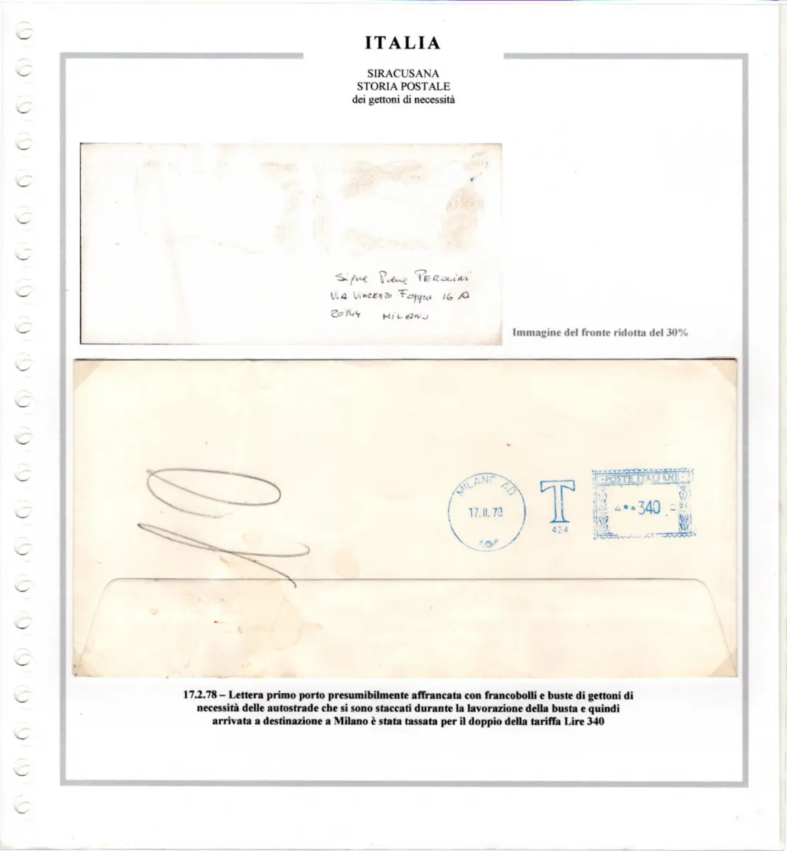 Umschlag - Sammlung auf Marini-Blättern montiert - Enthält 3 verschiedene Bedarfsmarken der italienischen Autobahnen und 7 posthistorische Dokumente, alle frankiert mit Werten der Syrakus-Serie - Seltenes Set für Spezialisten der Serie Cod. 4010 / WEB