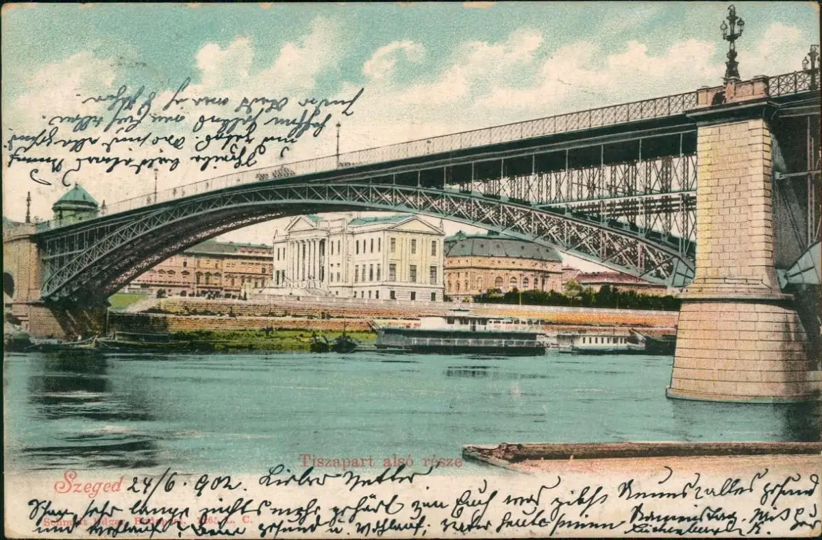 Szegedin Szeged | Сегедин Tiszapart Brücke 1902 ERBENDORF (Ankunftsstempel)