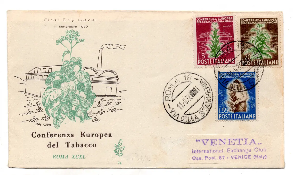 Tabakserie auf nicht gereistem FDC Umschlag - Tabak Nr. 629/631 Serie auf Umschlag nicht wie bei dieser Ausgabe üblich gereist - sehr guter Erhaltungszustand Code 435/11