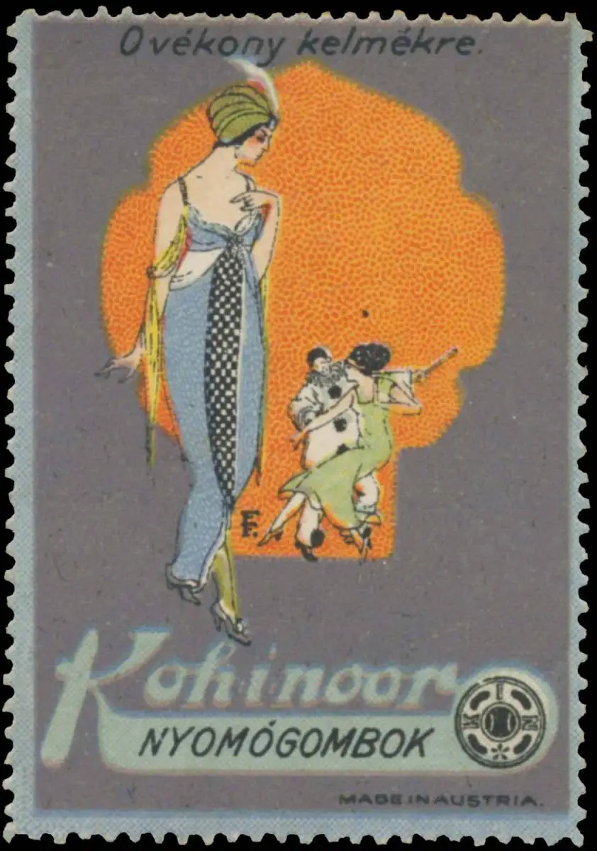 Nyomogombok, Koh-i-noor Druckknöpfe in ungarischer Sprache, Größe/Zustand: 6x4 , guter Zustand, Original alte Reklamemarke die seinerzeit für die Werbung benutzt wurde