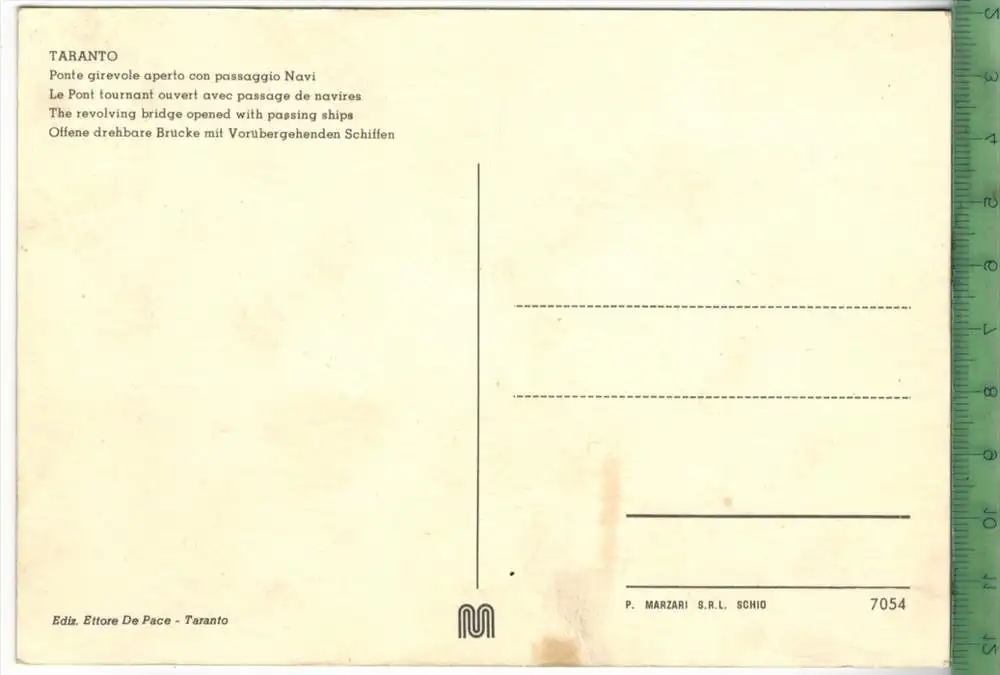 Taranto, offene drehbare Brücke mit Zerstörer, Verlag:......, POST KARTE, Erhaltung: I-II, unbenutzt, Karte wird in Klarsichthülle verschickt.