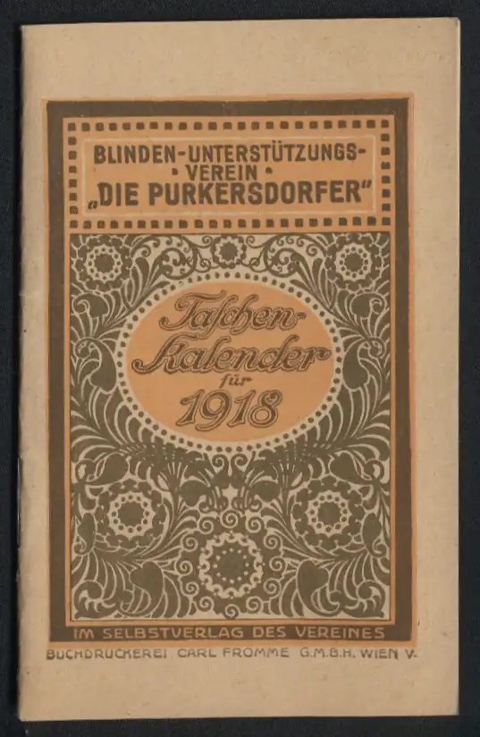 Taschenkalender 1918, Blinden-Unterstützungs Verein Die Purketsdorfer
