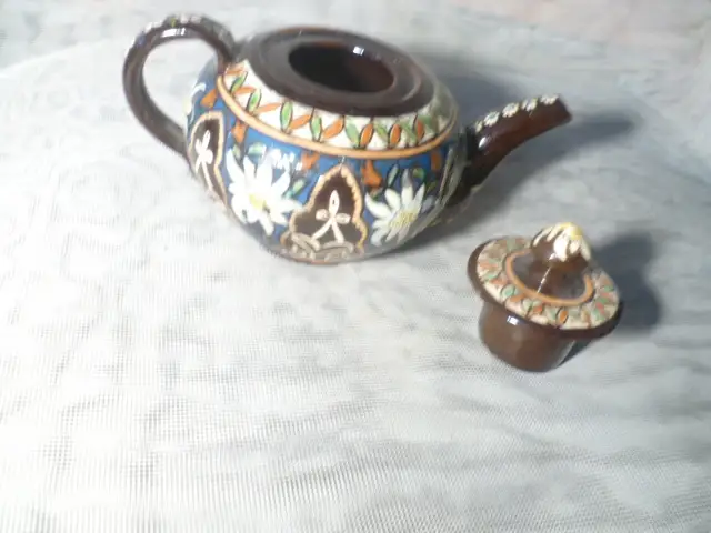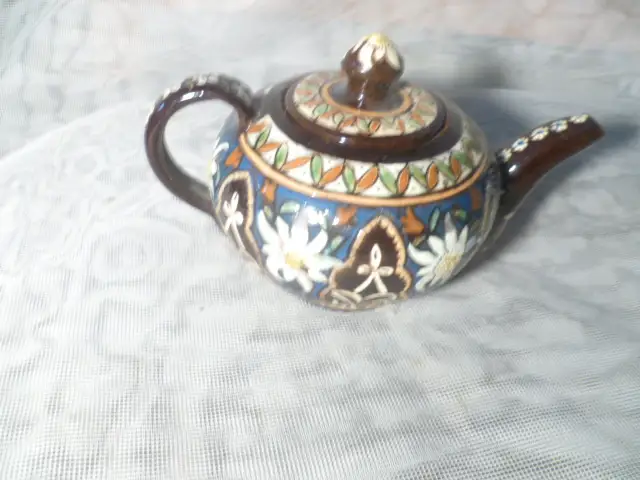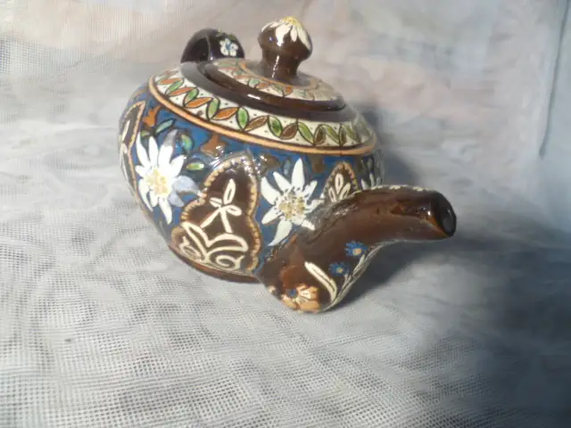 Tee Kännchen mit Deckel Thuner Chrutmuster auch Edelweiß von Josef Wanzenried 1840-1900 oder Lengacher Max um 1880 entstanden