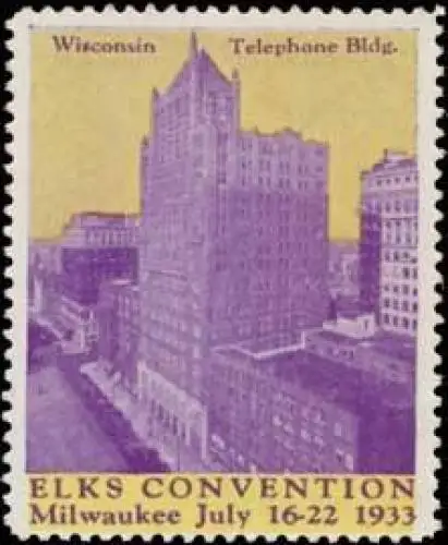 Elks Convention, Hochhaus, Größe/Zustand: 4x4 , guter Zustand, Original alte Reklamemarke die seinerzeit für die Werbung benutzt wurde