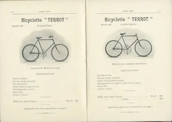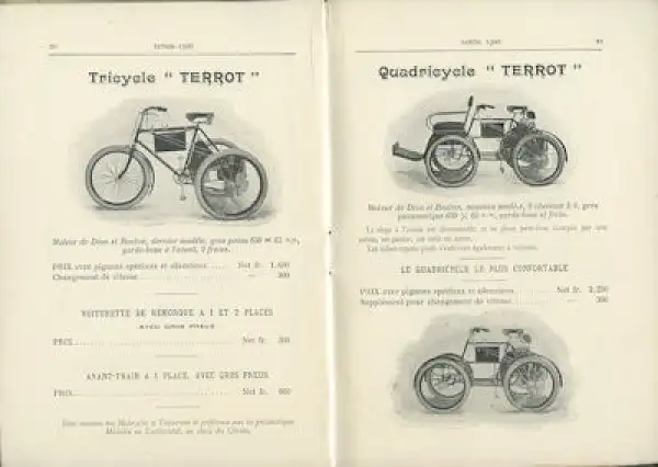 28 Seiten 19 x 13 cm Fahrräder, Motorrad Tricycle und Quadricycle, Automobile Französischer Text Leichte Gebrauchsspuren, überwiegend Fahrrad-Modelle