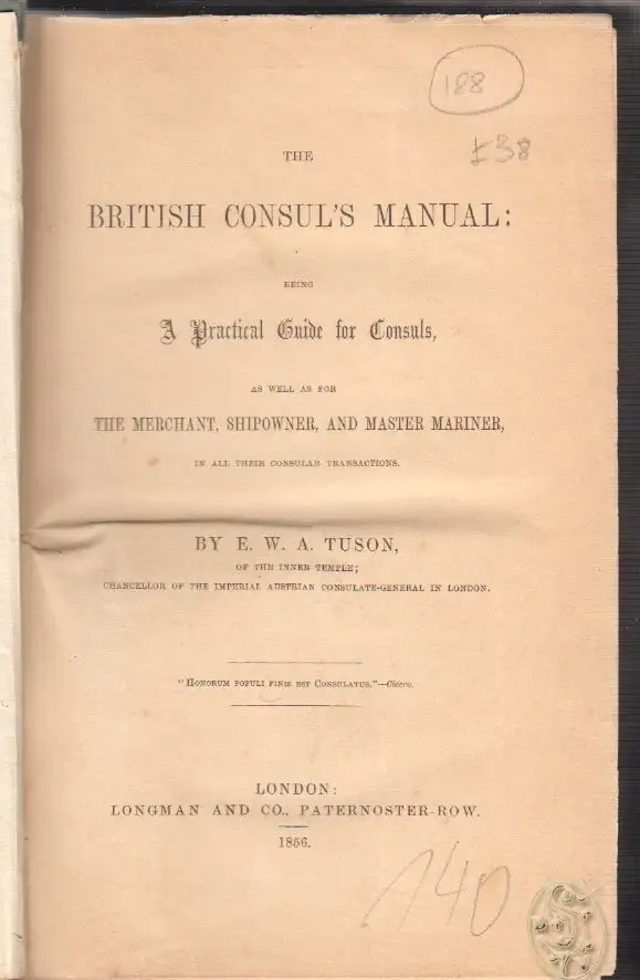 Bemerkungen: E. W. A. Tuson, of the inner temple; Chancellor of the Imperial Austrian Consulat-General in London.