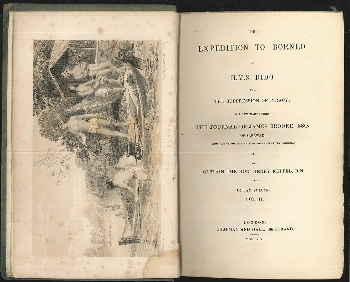 Bemerkungen: Henze I, 358f. - Erstausgabe des Reiseberichtes von Henry Keppel (1809-1904), der an Bord der HMS Dido nach Borneo reiste, wo er gemeinsam mit seinem engen Freund James Brooke (1803-1868), der 1842, als Dank für die Niederschlagung eines Aufstandes, durch den Sultan von Brunei zum Raja von Sarawak ernannt worden war, gegen die Piraterie vor Ort kämpfte. Keppels vorliegender Bericht enthält auch Auszüge aus Brookes Tagebüchern. Keppel schreibt im Vorwort, nach einer gedr. Widmung an seinen Vater,: "The visit of her Majestys ship Dido to Borneo, and her services against the pirates, occupy comparatively so small a portion of these volumes, [....] It was only by undertaking to make the account of them part of the narrative, that I could prevail upon my friend Mr. Brooke to entrust me with his Journal for an public object;. (Preface). Die Lithographien stammen aus der berühmten viktorianischen lithographischen Anstalt von William Day und Louis Haghe und sind entsprechend im Stein signiert "Day & Haghe Lith.rs to the Queen". 16-seitiges Heftchen mit Verlagsanzeigen am Ende von Band II beigebunden. First Edition of Henry Keppels (1809-1904) account of the journey on bord of HMS Dido to Borneo, where he, togheter with his close friend James Brooke (1803-1868), who became Raja of Sarawak in 1842 after helping the Sultan of Brunei to suppress a local rebellion, fought against piracy. In the preface Keppel writes: "The visit of her Majestys ship Dido to Borneo, and her services against the pirates, occupy comparatively so small a portion of these volumes, [...] It was only by undertaking to make the account of them part of the narrative, that I could prevail upon my friend Mr. Brooke to entrust me with his Journal for an public object;." The lithographic plates are signed "Day & Haghe Lith.rs to the Queen", William Day and Louis Haghe formed a parthership in the 1830s and became the most popular lithographic printing firm in victorian London. Vol. II with attached Publishers-Announcements "Works published by Chapman and Hall" (16 pp).